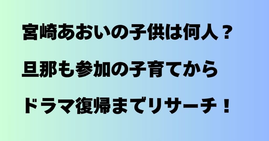 宮崎あおいの子供は何人?旦那も参加の子育てからドラマ復帰までリサーチ!