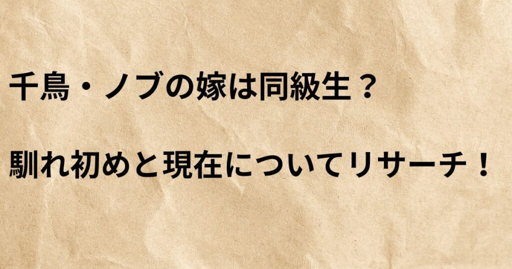 お笑いコンビ「千鳥」のノブさんと言えば、独特の関西弁と面白いツッコミで人気を集めていますよね。 そんなノブさんの奥様について、「同級生だった」という噂を耳にしたことはありませんか? 今回は、ノブさんの奥様についてリサーチしてみました。 二人... -