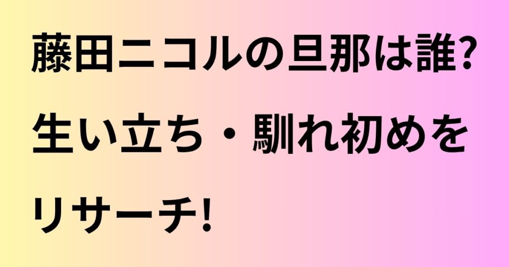 藤田ニコルさんが結婚された時とても話題になりました。 旦那さんは一体誰なのか、どんな生い立ちの方なのか、改めて知りたい方もいらっしゃるのではないでしょうか? そこで今回は、藤田ニコルさんの旦那さんのプロフィールや生い立ち、そして二人の馴れ... -