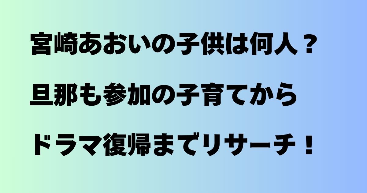 今回は、宮崎あおいさんの子供の人数や、岡田准一さんとの子育て、そしてドラマ復帰について詳しくリサーチしてみました。